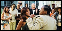 Bringing Down the House") bumbling security guard is immediately suspicious of the black folks moving into the estate, but all she truly wants is to be promoted to real police officer. Wisecracking, heavy-set twins (Jerod Mixon, Jamal Mixon), cousins of Todd's, laugh their way through pot smoke, but, this being a forced-upon PG-13 comedy, the drug paraphernalia is never glimpsed and a lot of jarring cuts occur throughout just as characters are about to curse. The neighbors (Farrah Fawcett and a white-washed Danny Glover) fear for their safety as the cookout heats up, and are soon forced into joining in on the festivities. And Em does everything in her power to get the money-hungry Brittany out of the picture, sending her on a wild goose chase for a high-sodium boned ham. No mention has even been made of the jealousy Em's sister has for her and Todd's success, or the always-pregnant ho-bag out to snatch her kids a rich daddy, or the well-dressed, lawyer-wannnabe uncle (Tim Meadows) who, after nine tries, has yet to pass the bar exam.